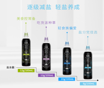 而六月鲜基于这一市场痛点,提出了“逐级减盐”的理念,并将这一理念融入产品,推出了含盐量梯度递减的轻系列,每百毫升从12克、10克到8克,在满足不同口味消费者的需求的同时,切实帮助“重口味”人群逐步降低盐分摄入,进而实现阶段性减盐。