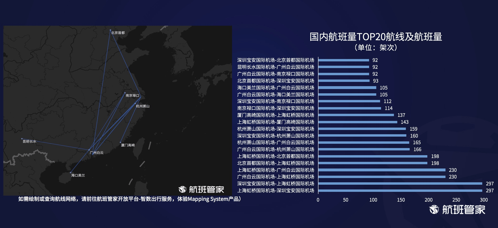 5、航班量:为实际执飞客运航班,不包括共享、经停,不包括取消航班