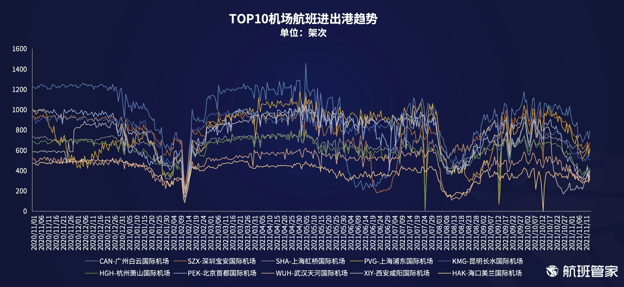 4、客运航班:仅包含了民航定期客运航班,不包含货运、公务机、通用等其他航班