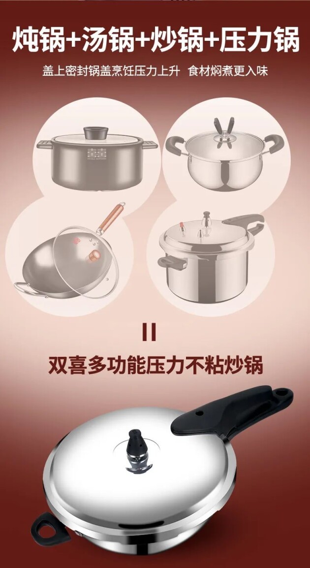 双喜巧厨多功能压力不沾炒锅