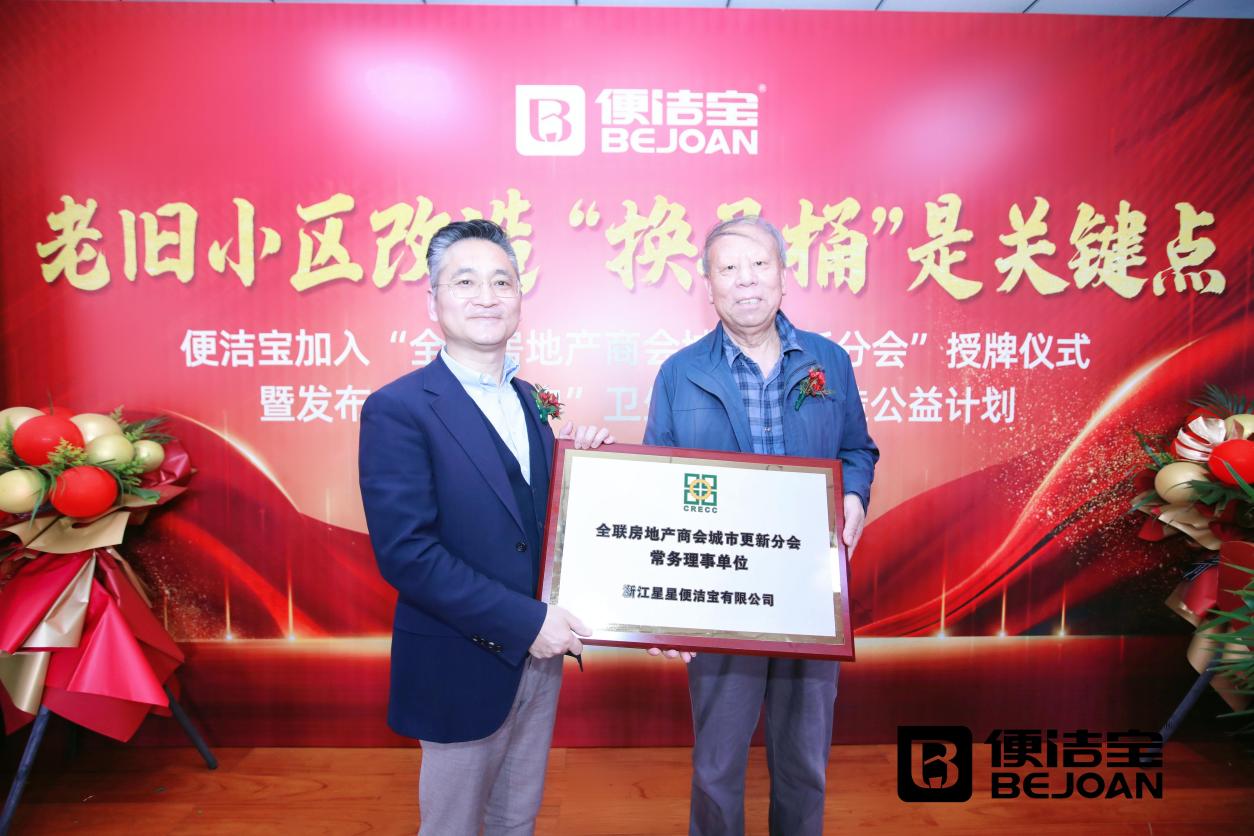 在城乡建设部大院全联房地产商会城市更新分会秘书处举行的“老旧小区改造,换马桶是关键点——便洁宝加入‘全联房地产商会城市更新分会’授牌仪式暨发布‘千城万户’卫生间健康改造公益计划”上,便洁宝正式对外发布正式发布“千城万户”卫生间健康改造公益计划。
