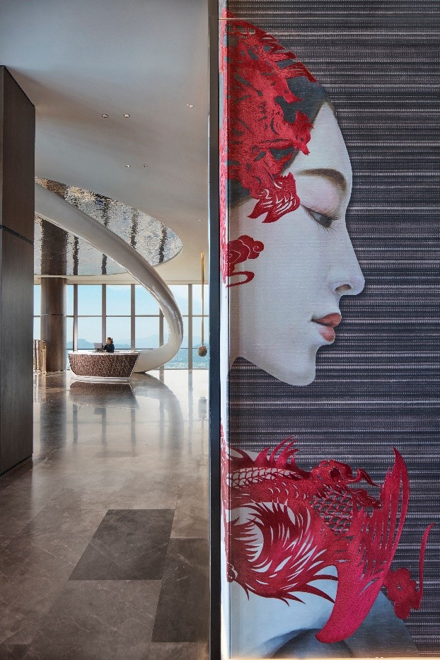 酒店不同空间都按照传统昆曲中的主要人物形象进行设计,使家具、灯光和地毯的颜色和设计语言与对应空间的特征相吻合。酒店前厅和宴会厅代表了昆曲中的主要角色——旦角和生角。