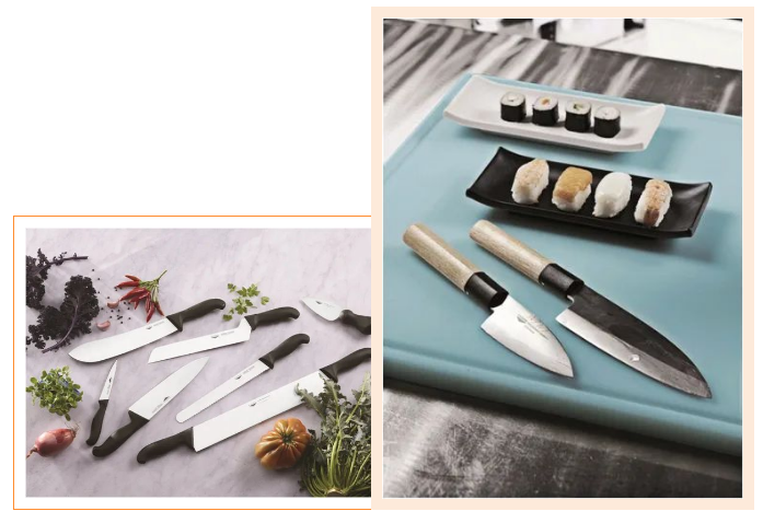 刀口锋利,不易生锈的刀具,舒适的握感,上手轻盈,切割不费劲。多种型号的刀具,满足厨房的不同需求。