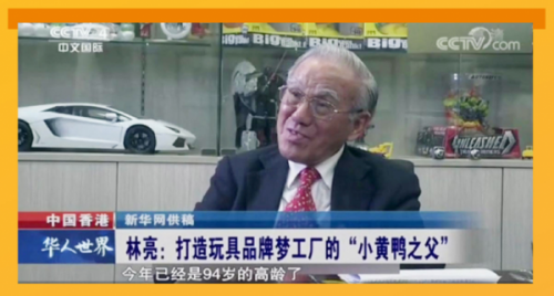 香港是由几代人努力建造起来的,从小渔村发展成大都市,离不开许多老一辈内地移民的巨大奉献,林亮先生也是其中的一员。作为上世纪50年代在玩具行业里“第一个吃螃蟹的人”,他坚守「诚、信、勤」3原则走到今天已经98岁,由原创小黄鸭玩具的开发,为中国香港开辟了玩具制造业市场,将中国玩具制造业发展到世界各地。