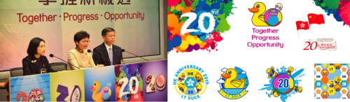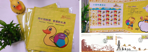 2017年,林亮先生原创的的小黄鸭IP形象“LT DUCK”还曾作为香港回归20周年创意图像,随巡回展纪念回归。图像设计采用了小黄鸭LT DUCK形象和彩色足球,两者都是香港的集体记忆,深受人们喜爱,让人回想到香港制造业在五、六十年代的蓬勃发展。同年,还与中国邮政&香港邮政联合发行了「香港回归20周年特别定制版纪念邮票」。