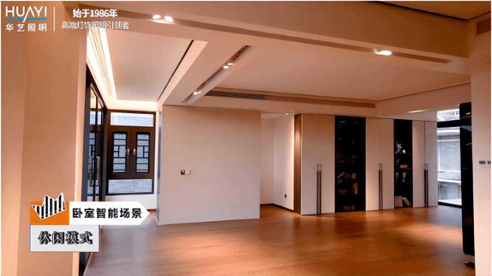 联动华艺无主灯智能照明系统,实现回家/休闲/观影/离家模式切换灯光场景,格调氛围一触即达:入户语音唤醒回家模式,天花内嵌射灯与中空吊灯以80%的亮度联动亮起,营造简单温馨的回家氛围;休闲模式下,所有天花灯具与背景墙灯带以3500K色温、高照度亮起,满足日常活动需求......