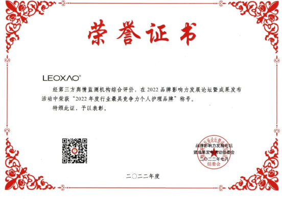 行业快讯丨2022(第九届)品牌影响力成果发布活动成功举办,LEOXAO来想品牌获“最具竞争力个人护理品牌”奖项