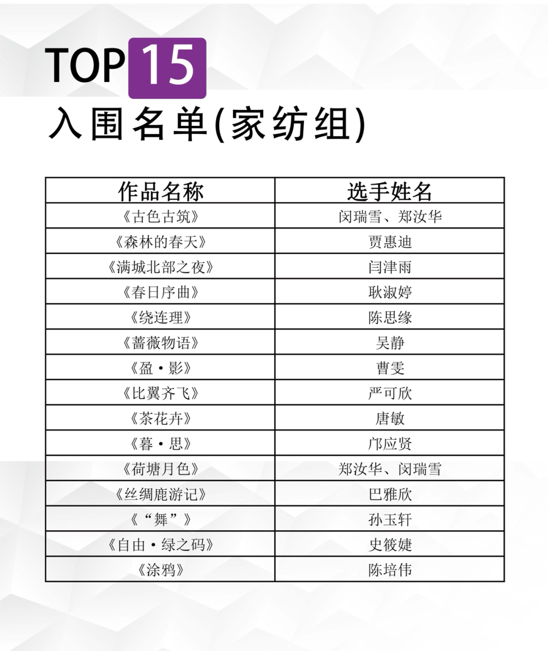 2022年9月8日,大赛完成初赛入围作品评审,评审团主要由穗宝集团家具研发总监、家纺研发总监、企业策划、华南农业大学校内老师以及专业设计机构的资深设计师共同组成。从作品概念创新、设计美观度以及商业前瞻性等多个维度出发,评审团经过多轮商讨,最终确定家具组30强、家纺组15强入围名单。