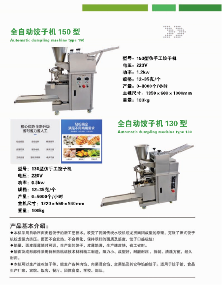 河北省邢台佳家机械制造有限公司主要生产饺子机、包子机、饺子皮机、机器人单/双刀削面机、刹菜机、切菜机等食品机械。公司始建于1995年,建筑面积8000平方,员工120多人,高级工程师3人,并拥有多名技术骨干。公司组建以来,管理现代化,产品质量标准化,售后服务规范化。先后荣获省市“重合同、守信用”单位,中国农业银行“AA”级信用单位、省科技企业、省消费者信得过产品,2002年又被评为省乡镇企业名牌产品,先后取得农业部TQC达标和IS09001质量管理体系认证,2003年又被评为河北省首届诚信守法企业。
