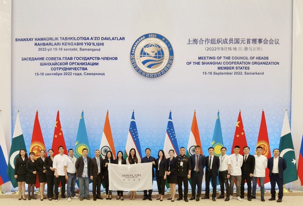 2022年9月15日至9月16日,举世瞩目的上海合作组织成员国元首理事会第二十二次会议在乌兹别克斯坦古城撒马尔罕盛大召开,本次峰会的主办地撒马尔罕游客中心由八家酒店、"永恒之城"景点、国际会议中心及购物娱乐场所组成。其中天府明宇商旅旗下的豪华酒店"撒马尔罕丝路明宇豪雅酒店"及"撒马尔罕明宇丽雅酒店"分别接待了中国代表团、土库曼斯坦总统及代表团、阿塞拜疆总统及代表团并圆满完成各项接待任务。峰会期间,撒马尔罕明宇酒店群全球流媒体的新闻报道中均有精彩亮相。