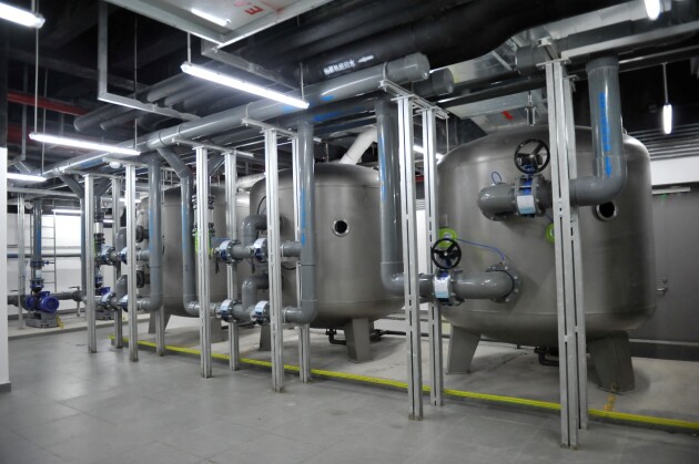 通过向施工方采访,我们了解到清远体育中心的所有比赛池、训练池、儿童池的水循环系统单独设置,水处理设备采用威浪仕品牌的除湿热泵、空气源热泵、大型不锈钢砂缸、臭氧反应罐、吸附罐等。