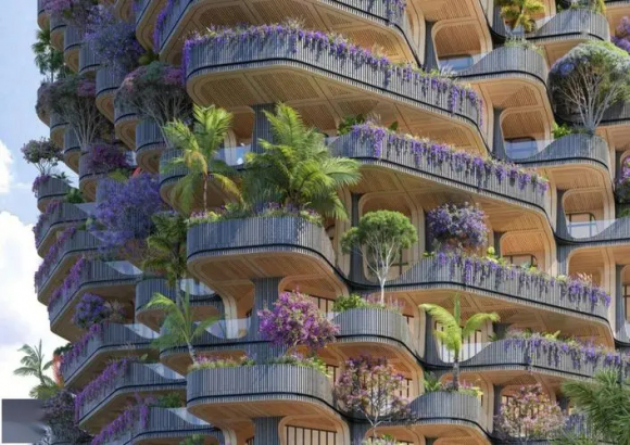 第四代森林建筑是随着时代的进步,人们不断探索能更好的满足现代生活品质和城市发展而推出的建筑产品。她具有超前设计理念,以“生态、健康、环保、智能”为一体的新型住宅产品,与第三代电梯房相比,第四代住房改变了全是钢筋水泥的外立面,最大的特点就是实现了大绿化覆盖,做到层层有阳台,户户有庭院。大庭院、大阳台对于传统电梯房来说是多么奢侈的一件事,但是第四代森林建筑做到了户户大阳台,大庭院。从外面看,愿景砚山曼城第四代森林建筑是由绿植笼罩的,像一棵茂密的参天大树。从里面感官,自己像住在树林里一样,窗外是绿意的环境,有着葱葱绿植,五彩斑斓的花朵。更像是在自家的庭院里,打造一番绿意小天地,不仅温馨了自己,也为生态环境做出贡献。