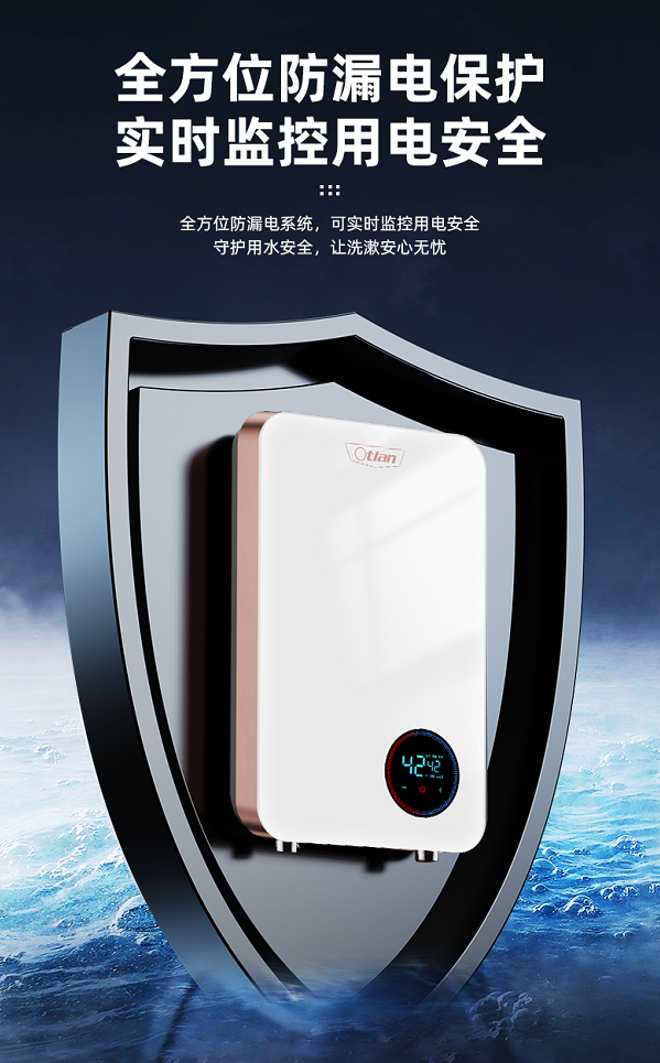 对于电热水器的使用,消费用户最大的安全顾虑就是怕漏电。为了让消费者在使用过程中没有后顾之忧,奥特朗即热式电热水器F6H沿用四重防漏电科技:接地保护、发热管水电分离、进出水隔电墙,漏电保护装置,开启全方位的防漏电保护,实时监测用电安全,避免漏电隐患,让洗浴安心无忧,无需战战兢兢。