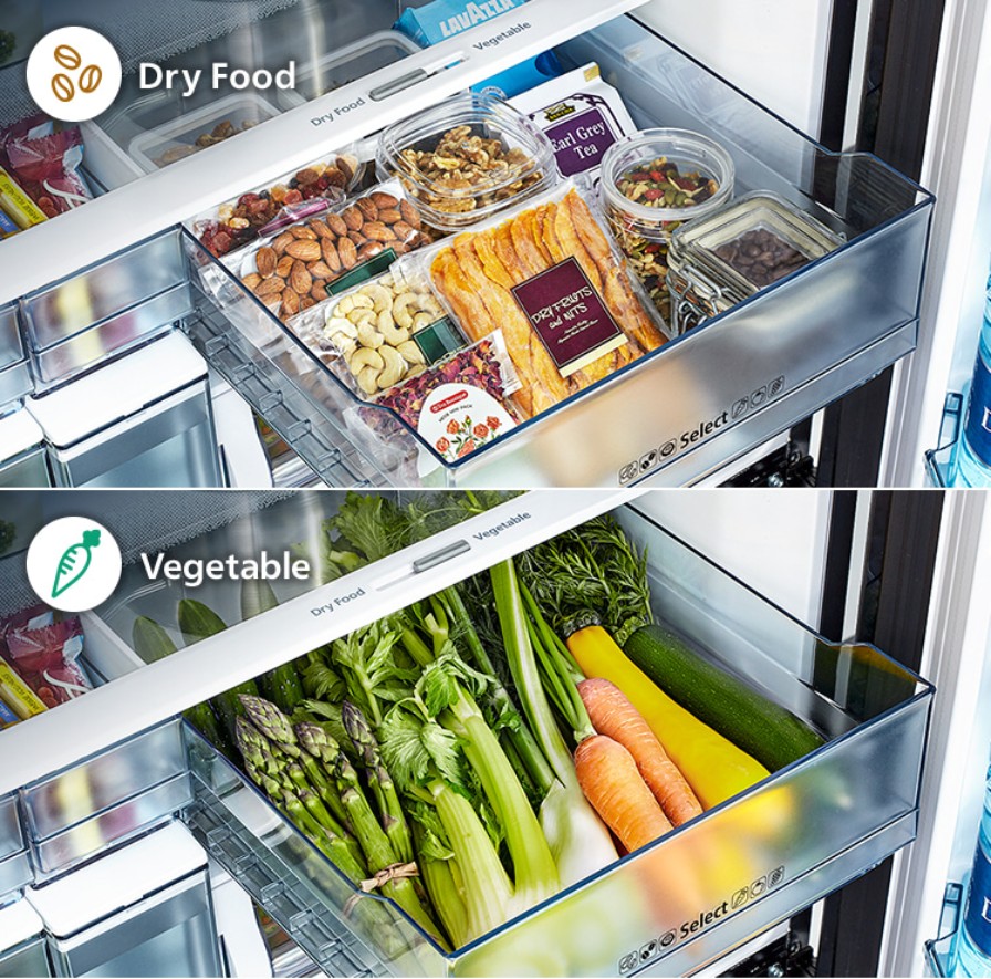 此外,R-FBF570NSC冰箱合理规划三大分区,巧妙的多样化设计,无论是冷藏室、冷冻室还是变温室,充分利用各处空间,提供科学轻松的储藏收纳,呵护不同食材臻鲜,让所有食材都能找到自己合适的栖身之地。
