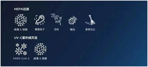 飞利浦UVC空气净化消毒机在UV-C紫外线技术基础上,增加HEPA过滤网,有效灭活包括新型冠状病毒SARS-CoV-2内的已知细菌和病毒,并去除空气中的花粉、螨虫、灰尘等颗粒污染物。