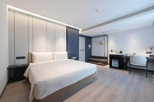 截至目前,变形积木共主导及参与了亚朵旗下位于北京、上海、青岛、大连、郑州、乌鲁木齐、定西等全国多个城市的13座酒店的内装工作,服务范围涵盖设计、施工、部品部件提供、软装等。这其中,北京和平里对外经贸大学亚朵酒店为变形积木全程参与设计、施工、参照“亚朵V3.5”产品体系打造的现代化精品装配式酒店。项目总施工周期80天,完成了181间客房的改造升级。开业至今,该酒店在预订平台上的评分始终维持在4.9分(满分为5分),住客普遍反映酒店空间疏朗明亮,房间空气清新。