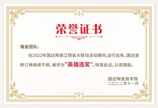本次江西省联动大促,从10月21日到11月20日,历经31天,江西省各大国达陶瓷旗舰店凭借总部政策的大力支持下全力以赴,以出色的业绩证明了国达陶瓷强大的品牌影响力、号召力。其中,瑞金、兴国、乐平国达陶瓷旗舰店分别以202.05%、194.47%、165.2%的业绩完成率获得所在业绩PK小组的冠军。