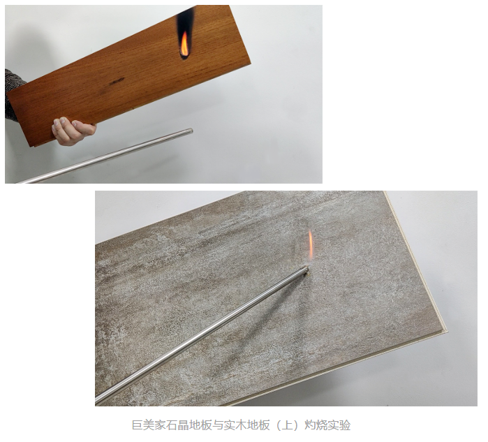 以巨美家为例,为丰富视觉美感,提升艺术内涵,巨美家产品采用高清花色复刻核心技术,能够打造出质感自然,纹理立体的天然纹理样式,且风格多样,为客户提供更多选择;且巨美家石晶地板的多层特殊材料通过变温叠压技术,在温度骤变、燥湿无常条件下,依然保持伸缩稳定、表里如一的常态特性,遇水更涩,独具防滑功能,而坚韧的表层则富有弹性和降噪效果。