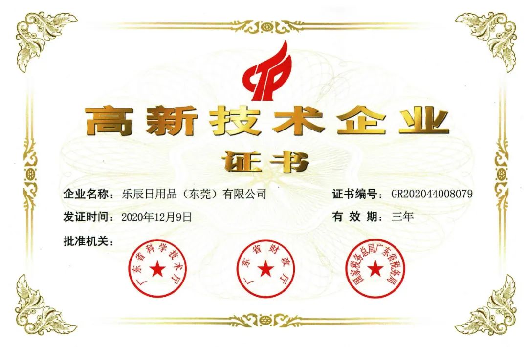 创新是乐辰的发展之源,是我们的DNA,也是乐辰的核心竞争力。公司创立以来,乐辰公司始终致力于不断创新、开发新技术和新产品,公司目前代理了数个国外品牌并拥有近百个自有品牌,三百多个商标,一百多个专利、版权证书,申请了几十款创新的专利产品。公司也因此在 2016年及2020年分别获得了国家颁发的高新技术企业证书,得到了政府的认可及支持 。目前经统计,乐辰公司平均每十天申请一个知识产权(含商标,外观专利, 实用新型及发明专利)。