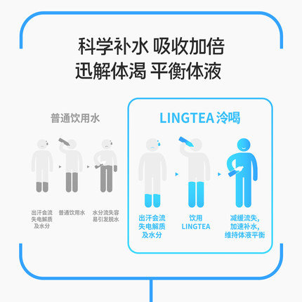 LINGTEA泠喝口服输液型饮料具有与液体最相似的特性及最佳吸收机制,其采用小肠吸收的方式,使位于小肠壁的SGLT-1让葡萄糖和钠达到最佳配比,最大程度地扩大水分,进而促使人体吸收的水分翻倍,以较低的排尿量显示高体内水分吸收量。LINGTEA泠喝口服输液型饮料经过世界卫生组织WHO公示的口服输液的比例进行配比,可以达到人体的匹配吸收量。在进行剧烈运动后,极大地提供人体所需的水分和及时补充微量元素。