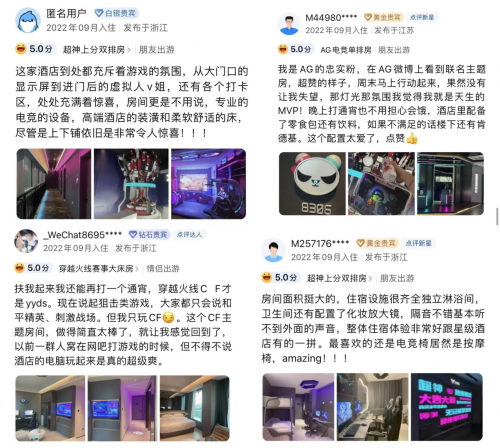 除了获得行业高度评价外,竞鹅酒店品牌在正式运营近半年后,也向市场交出一份亮眼的业绩答卷。截止2022年底,杭州首店入住率达86%,并且12月有50%天数入住率超过95%,用户复购率达54%,意味着竞鹅通过新鲜的跨次元内容体验,拥有了一批忠实的回头客。从用户评价上看,竞鹅酒店的OTA评分均分4.9,并长期霸占杭州电竞酒店热度TOP1,其所塑造一体化的深度电竞体验及品牌服务为用户留下了深刻印象。