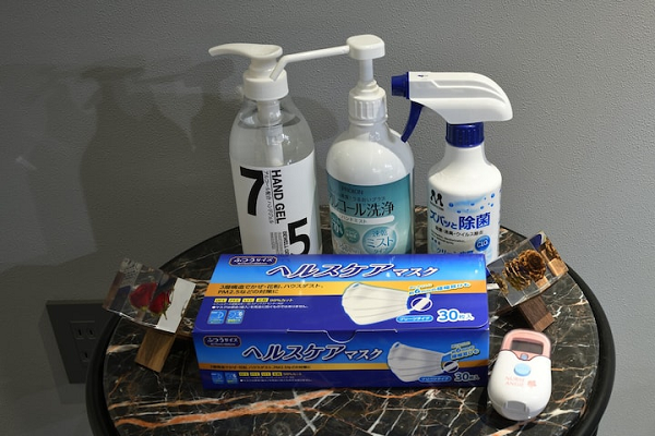 浴缸(带微气泡功能)、吹风机、清扫用品、洗发水、护发素、沐浴露、洗手液、智能马桶、热水器、免费洗衣机(室内)、免费烘干机(室内)、生活必需品(毛巾、卫生纸等)、衣架、床上用品、备用被褥、遮光窗帘、熨斗、晾衣架、衣物收纳用品、55英寸高清电视(带标准有线电视)、中央空调、集中供暖、火灾报警器、灭火器、高速Wi-Fi(66~112Mbps)、提供早餐、冰箱、微波炉烤箱、基础烹饪工具及调味料、餐具、洗碗机、电磁炉、烤箱、热水机、滴式咖啡机、烤面包机、面包机、葡萄酒杯、餐桌、专用玄关、免费停车场……口罩和消毒液也为住客准备好了!