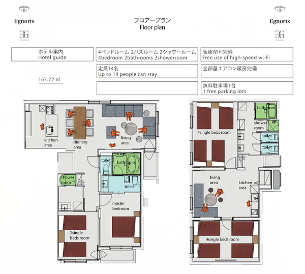 艾格诺茨的主题是冬——还有什么能比北海道的雪更浪漫呢?就在第二栋迪马丽普的隔壁,同样距离札幌市中心较近,可住14人。