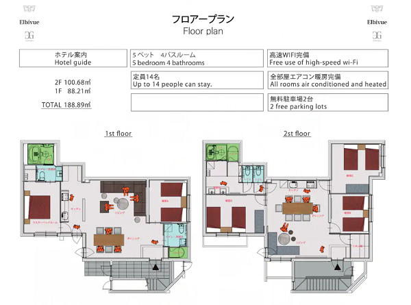 另外,每一栋都有包括家主专用卧室在内的多个卧室、多个浴室、多个卫生间,还配有烘干机洗衣机、料理器具齐全的厨房,能用中文咨询、预约这一点也很加分——这是一个专为亚洲团体游客打造的品牌度假公寓,定位非常明确,种种设计也确实贴心合意。