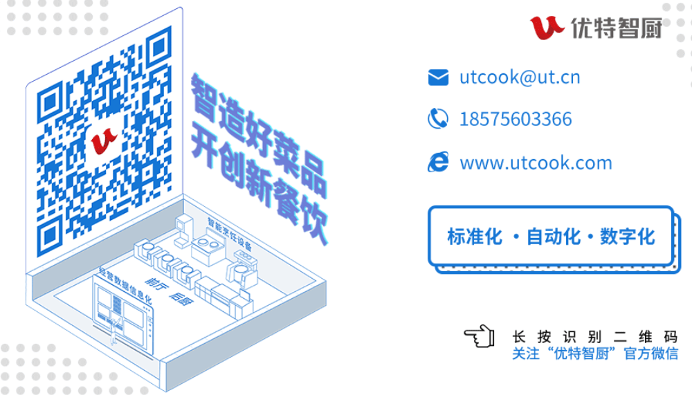 作为推行中餐标准化的推行者,优特智厨始终坚持以客户为中心,持续围绕“1:1复制还原大厨技艺”核心技术领域,不断推进团餐、连锁、正餐等多个餐饮场景标准化烹饪的纵深发展,为餐企带来高效率烹饪体验,并助推餐企实现数智化跨越式发展。