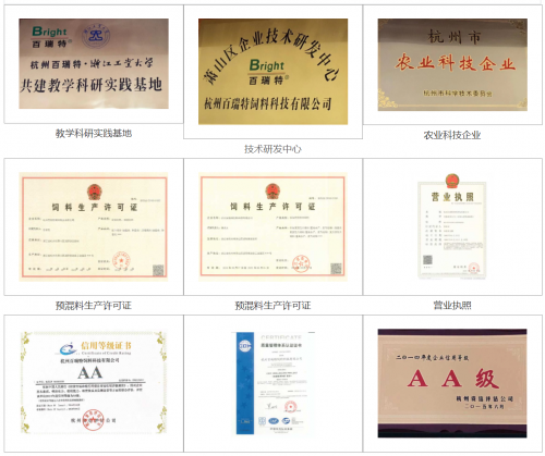 通过17年努力,百瑞特从一个“新生儿”迅速成长为浙江饲料行业中各项指标名列前茅的“巨人”,稳健成长为“杭州市级农业科技企业”,在杭州地区享有极高的声誉,并荣获浙江省行业优秀示范单位。