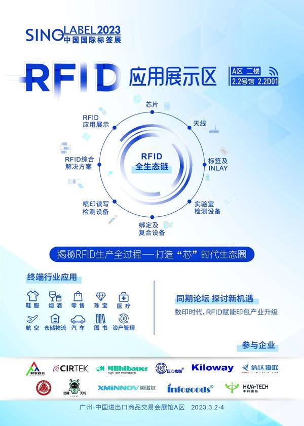 2023年中国国际标签展倾力打造【RFID应用展示区】,深度挖掘RFID蓝海机遇,提供完整供应链的防伪与追溯创新落地解决方案,为行业注入新活力。