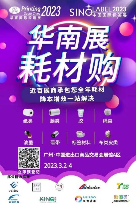 作为2023年印刷包装行业的开春重头戏,2023华南印刷标签展现场除了展示行业最新的技术和设备,还将展出海量耗材!