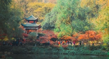岳麓山是中国四大赏枫胜地之一。秋天的岳麓山,银杏金黄一片,枫叶火红一片,远远望去,缤纷绚烂。