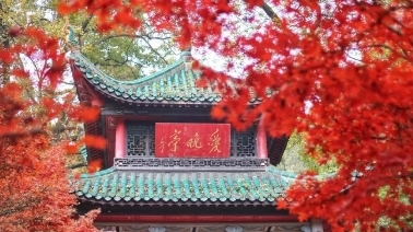 爱晚亭,从岳麓书院靠山侧的门出来后,便是爱晚亭。这里三面环山,四周被枫林包围,是岳麓山中观赏红叶秋景的最佳地点之一。