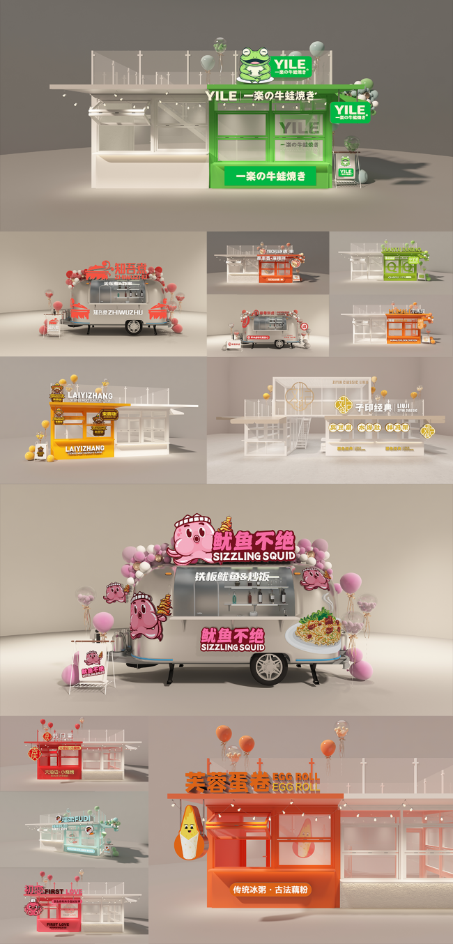 品牌基础形象为美式餐车和全透水晶屋,无论是每一家品牌的独立VI设计还是服务标准,从店面形象到规范管理,都由太阳城运营团队量身打造。同时在水晶屋配备休闲屋顶,既可以行走街区、品尝美食、拍照打卡,又可以悠闲地享受下午茶时光。