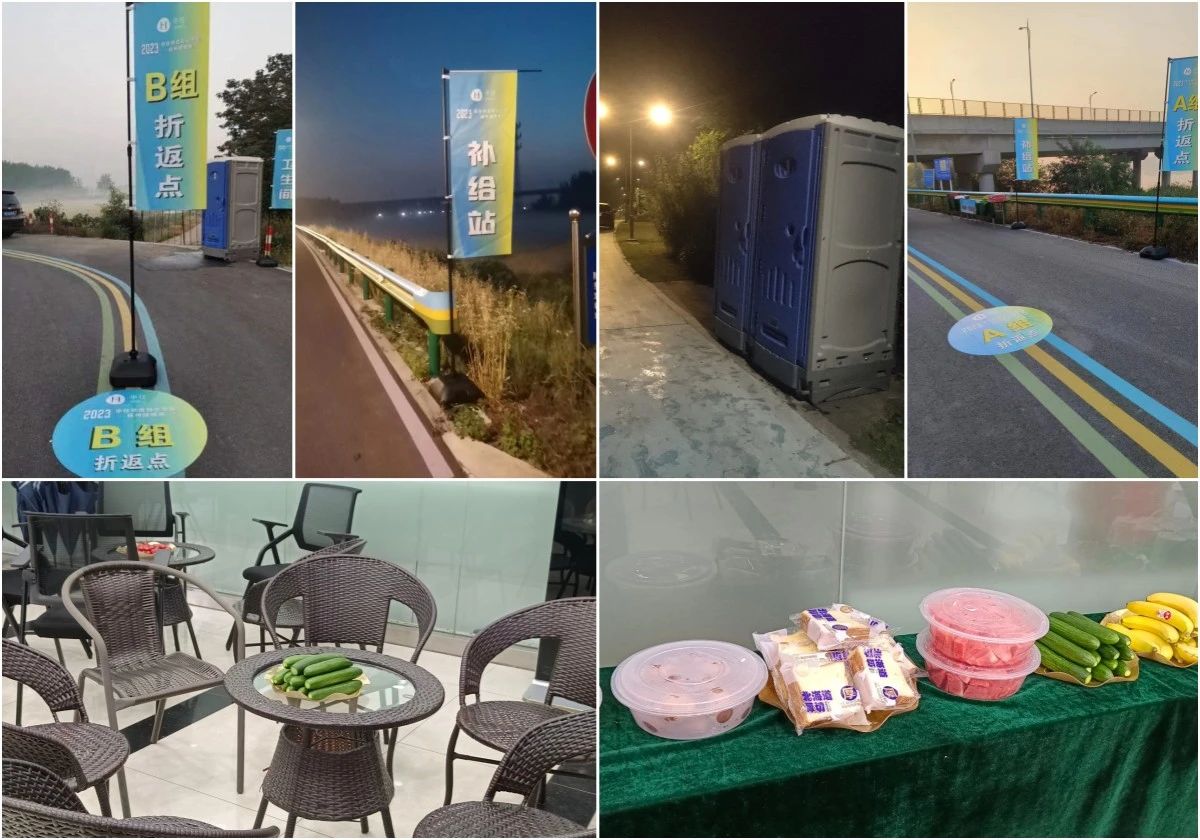 各类补给、保障物资、现场指示标识和服务人员在凌晨开始陆续全部摆放到各指定位置,确保整个活动顺利进行。