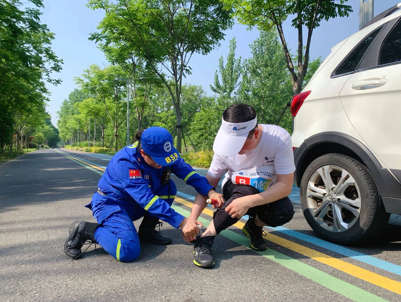 健康跑全程配有各类保障车四辆,急救人员4名,补给和服务人员若干名,确保整个活动稳中有序,安全进行。