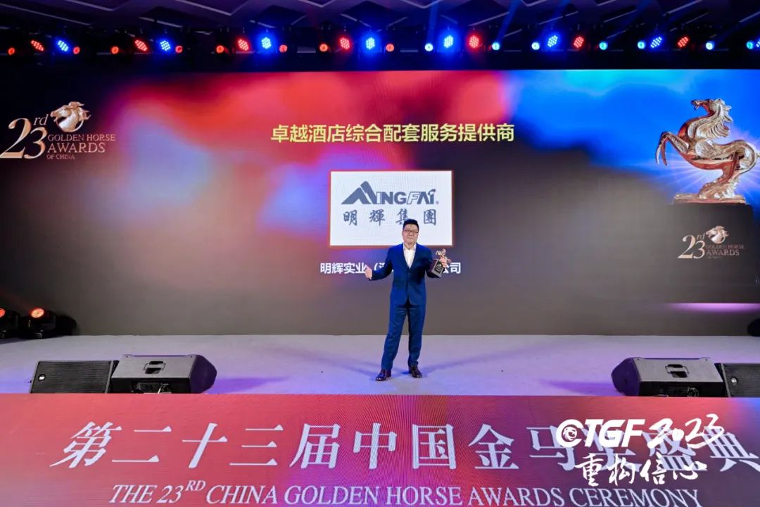 明辉集团用专业的酒店综合配套服务能力展示出卓越的供应商实力,在新的发展需求中,明辉用实际行动创新创造,助力文旅业蓬勃发展。本次中国金马奖盛典上,明辉集团凭借突出的贡献获得大家的认可,荣获卓越酒店综合配套服务提供商的赞誉,明辉集团西南区区域总经理张诚欣先生上台领奖。