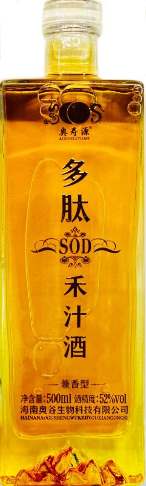 海南奥谷生物科技有限公司默默耕耘在SOD多肽领域,历经21年的科研攻关,成功将世界上最前沿的三项顶尖科技完美融合,将卓越的科研成果贡献社会,用天然的物理萃取技术与前沿的高新科研实力成功融合,开发出全球首款不用粮食、不用水酿造的--奥寿源多肽SOD禾汁酒。由中科院研究员张永北博士团队、河南极微生命科学研究院洪伟卿院长(谷物多肽首席研发人)、湖南大学詹拥共博士团队(植物SOD首席研发人)、河南理工大学博士生导师温小萍教授团队、农机专家肖华利高工团队,投入三亿六千万研发经费,先后荣获两项国际金奖,一项国际银奖,七十七项国家专利;此款多肽SOD禾汁酒富含稀有元素14种;微量元素31种;营养元素13种,通过大量试验,将新鲜人参放置到多肽SOD禾汁酒内,20天左右,人参在酒中发芽,一年左右时间开花。足以证明了多肽SOD禾汁酒对修复细胞、激活细胞和再生细胞最有力的证明。它填补了海内外不用粮食不用水酿造酒的空白,实现了谷物多肽、植物SOD与禾汁酒的完美融合,生产工艺以及质量处于该领域全球的首创性,唯一性,开创了人类历史的新纪元,具有划时代的意义。将为酿酒领域贡献最顶尖、最前沿的科技力量。